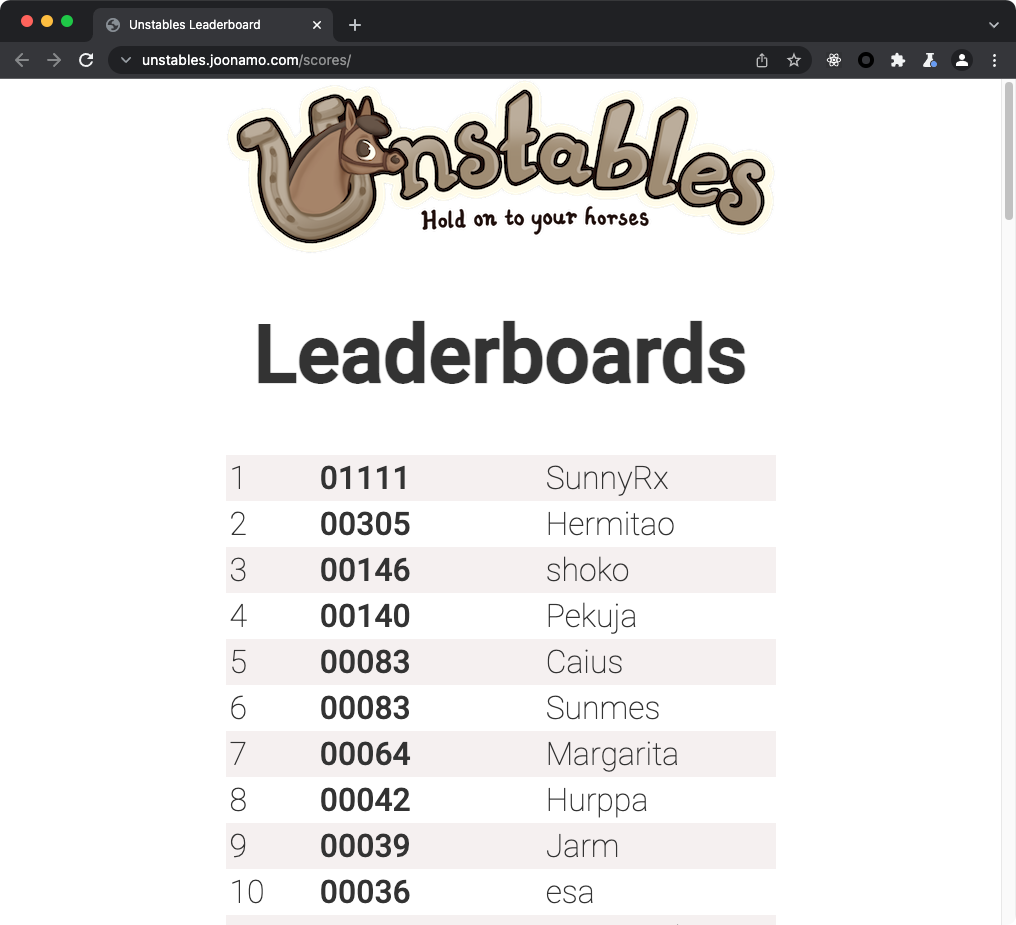 An Unity game created for Ludum Dare 46 game jam. In the game you play as a rider struggling to stay on their horse. We created this game with a small team. My responsibility was code, animations and most of the design.