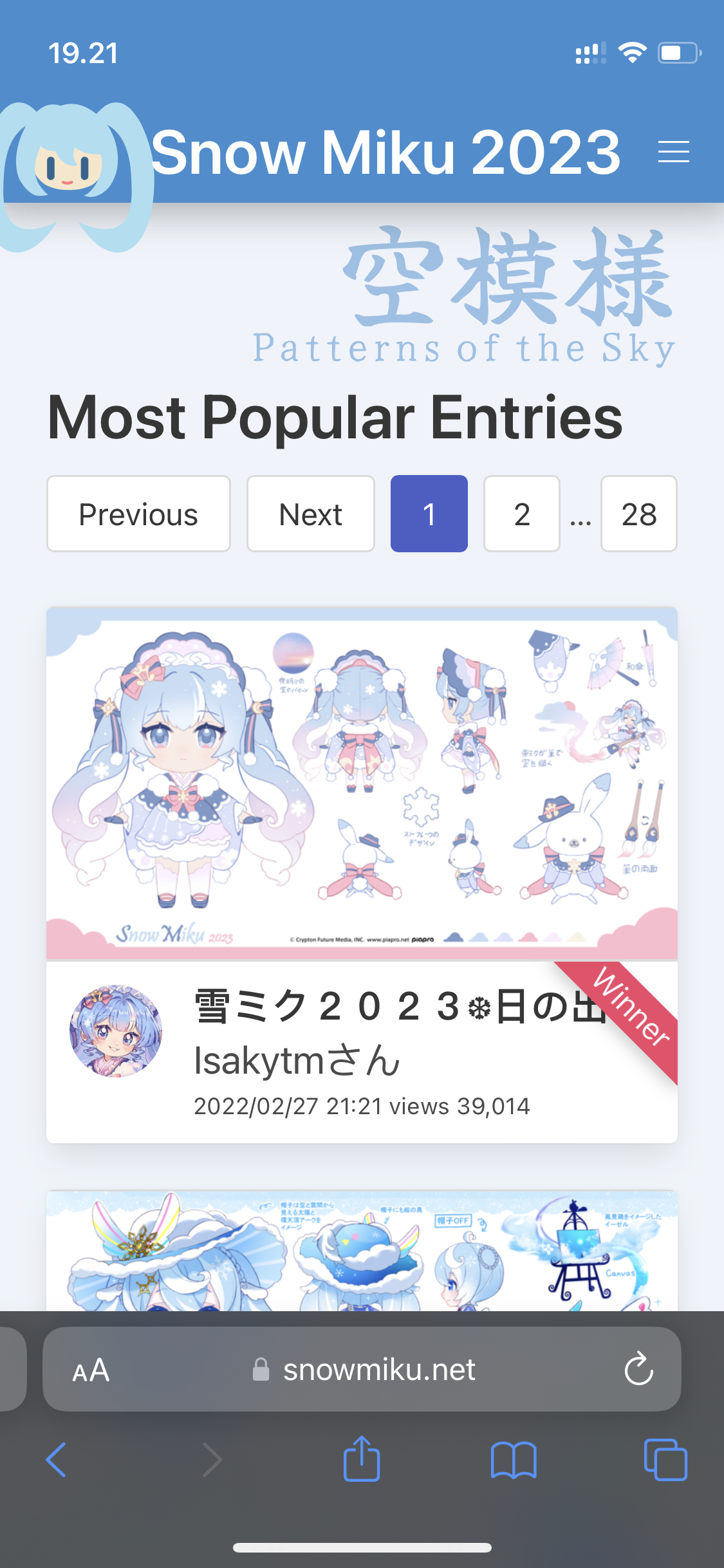 I wanted to upgrade Snowmiku.net aggregator for the 2024 design contest. The goal was still the same: create the fastest and most user-friendly way to browse entries in the yearly Snow Miku design contests. Since I had recent good experiences of migrating this portfolio to next.js, I decided to do the same thing with Snowmiku.net. I had updated the site to do routing with React router and state managment with plain React Hooks and migrating the front-end to next.js was surprisingly painless. I intended to keep the layout pretty much the same, still based on Bulma framework, but I've polished few bits here and there, such as showing the the theme of the selected year.